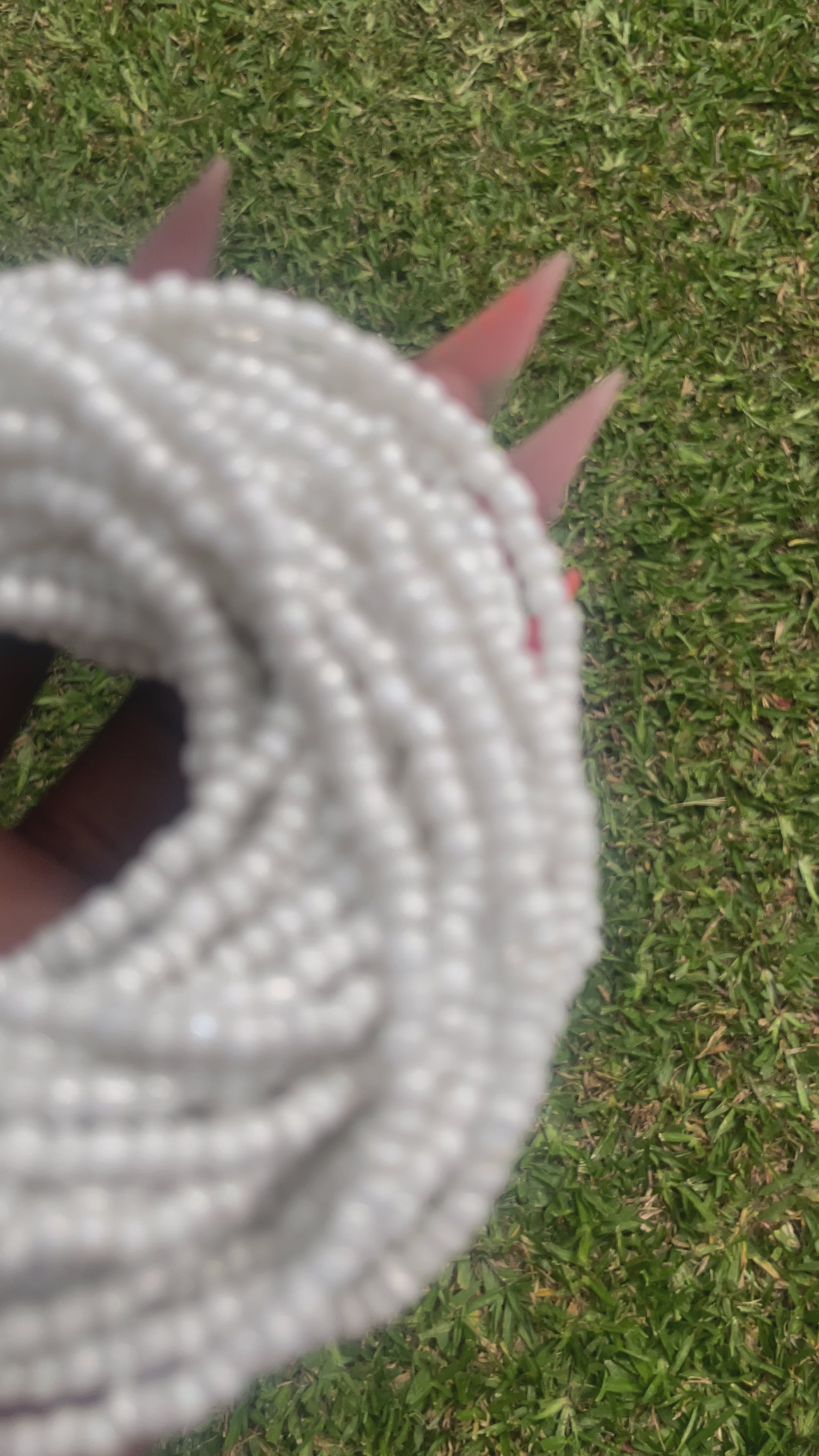 Balokuya Elastic Waist Bead – a timeless creation meticulously handcrafted with solid white glass crystal seed beads. This elastic waist bead embodies simplicity and sophistication, offering a stylish and adjustable fit that transcends beauty and symbolism.